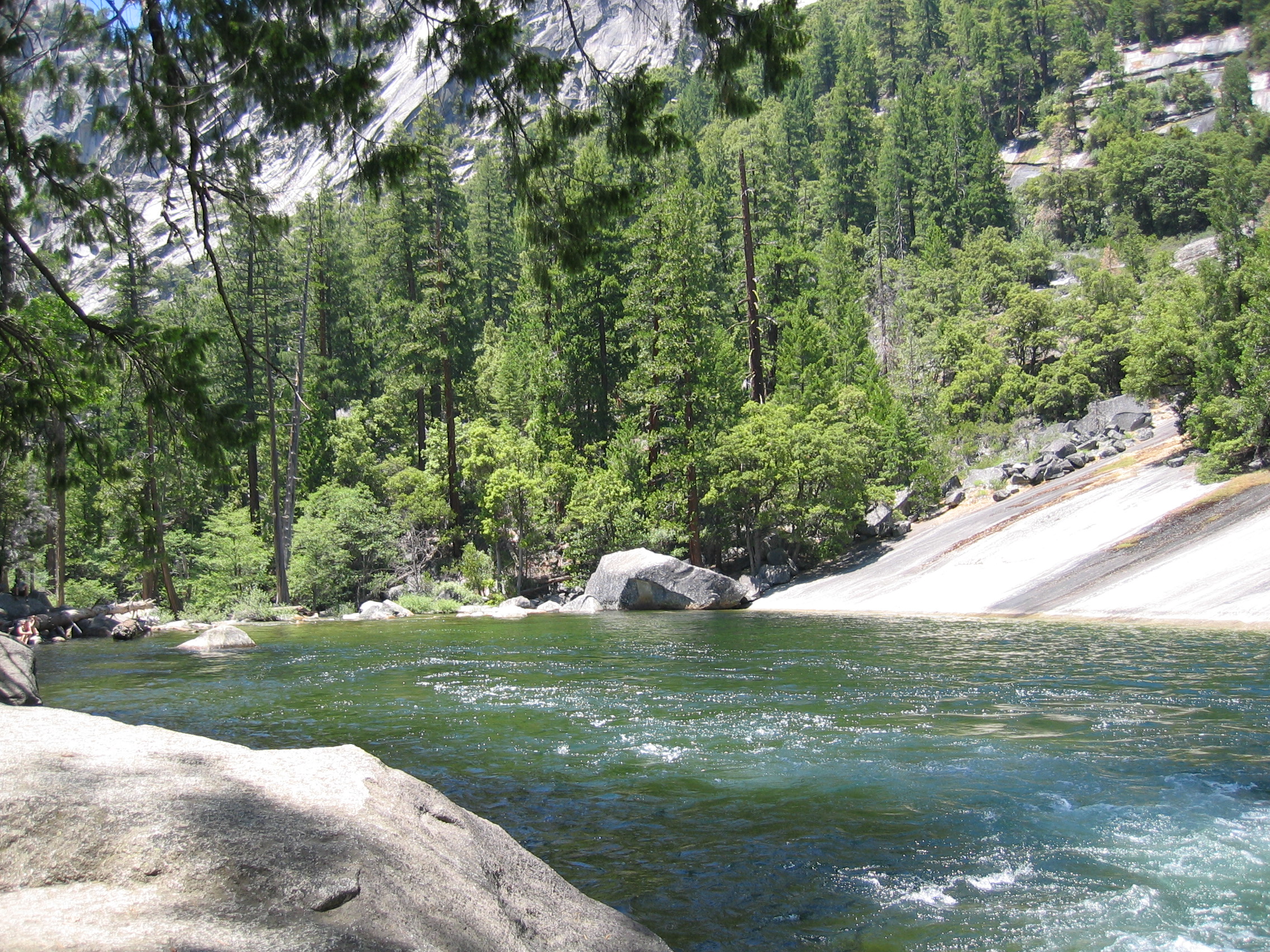 Nevada Falls was farther than I thought, but on the way I found the river flowing over this cool slab
